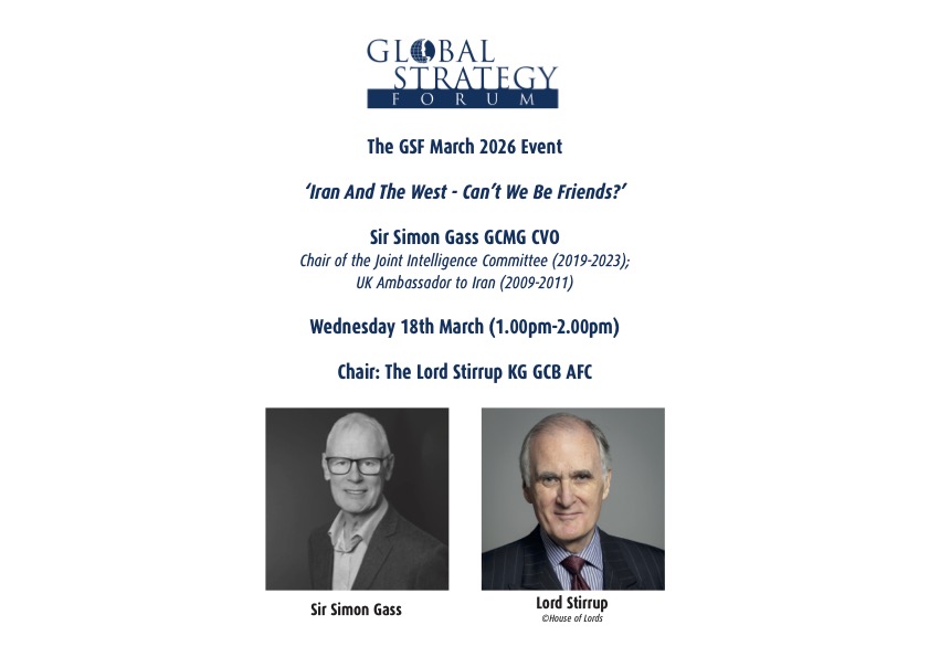Global Strategy Forum is an open forum, founded in 2006 and dedicated to the promotion of fresh thinking and active debate on foreign affairs, defence and international security issues. We are an independent, non-party political organisation. We publish commissioned research and we hold a series of lectures and debates in which we regularly seek the views of leading politicians, academics and opinion formers, both in Britain and internationally.