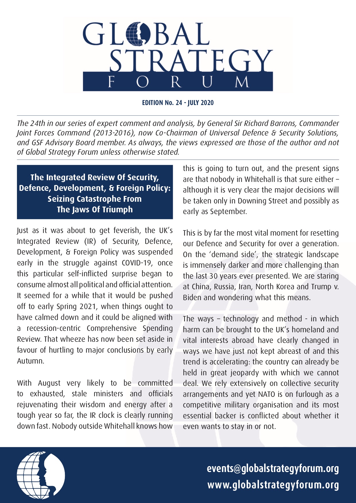 We have today published the 24th in our series of expert comment and analysis by GSF’s regular commentator and Advisory Board member, General Sir Richard Barrons. As always, the views expressed are those of the author and not of GSF unless otherwise Continue reading →