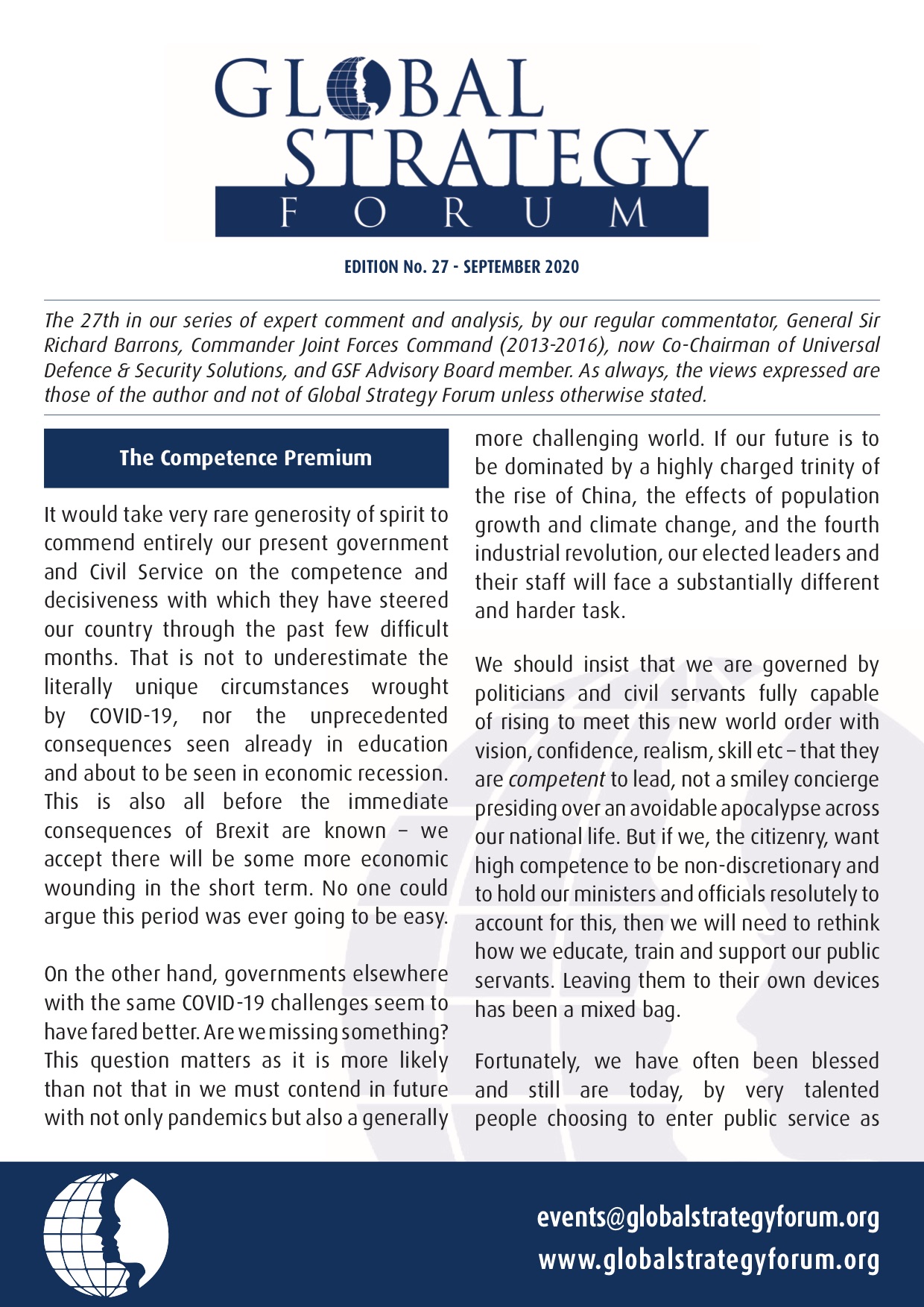 We are delighted to publish the 23rd in our series of expert comment and analysis, by Major General Sir Michael Carleton-Smith CBE DL. As always, the views expressed are those of the author and not of GSF unless otherwise stated. Continue reading →