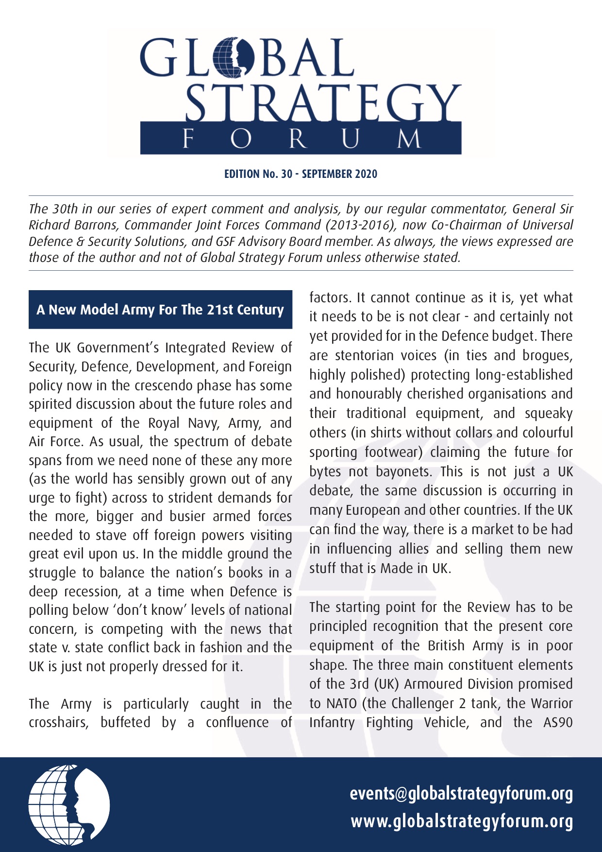 We have today published the 30th in our series of expert comment and analysis by GSF’s regular commentator and Advisory Board member, General Sir Richard Barrons. As always, the views expressed are those of the author and not of GSF unless Continue reading →