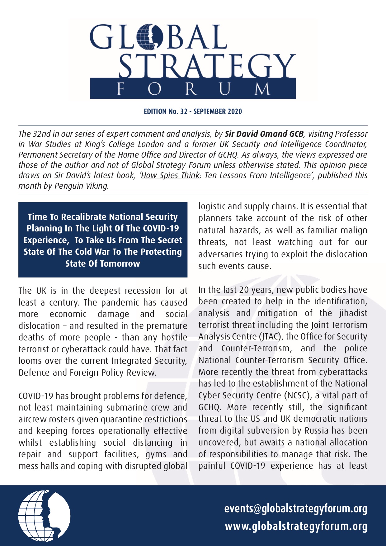 We are delighted to publish the 32nd in our series of expert comment and analysis by Sir David Omand GCB, visiting Professor in War Studies at King’s College London and a former UK Security and Intelligence Coordinator, Permanent Secretary of the Continue reading →