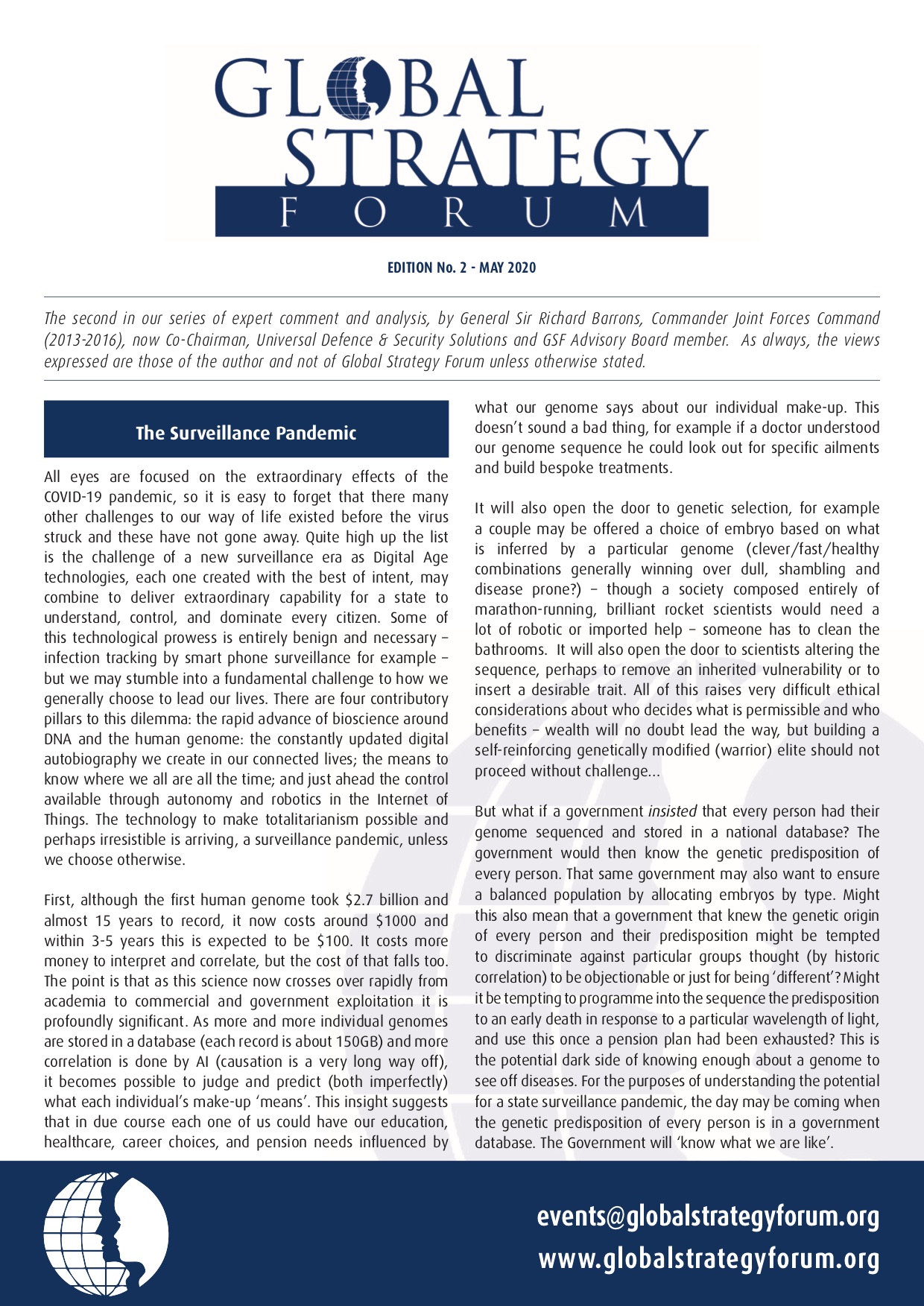 Please click here to download a letter from GSF’s Chairman, Lord Lothian, with an update on GSF’s activities and introducing our new online series of expert commentary and analysis.