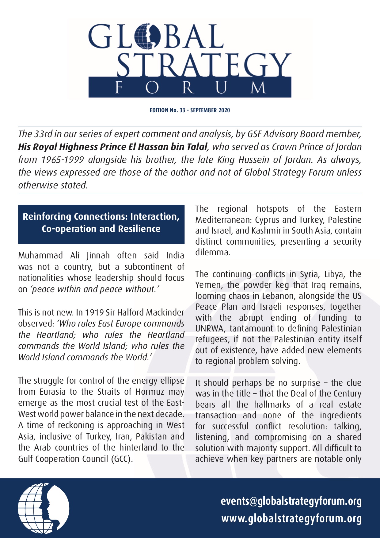 We are delighted to publish the 33rd in our series of expert comment and analysis by GSF Advisory Board member, His Royal Highness Prince El Hassan bin Talal, who served as Crown Prince of Jordan from 1965-1999 alongside his brother, the late Continue reading →