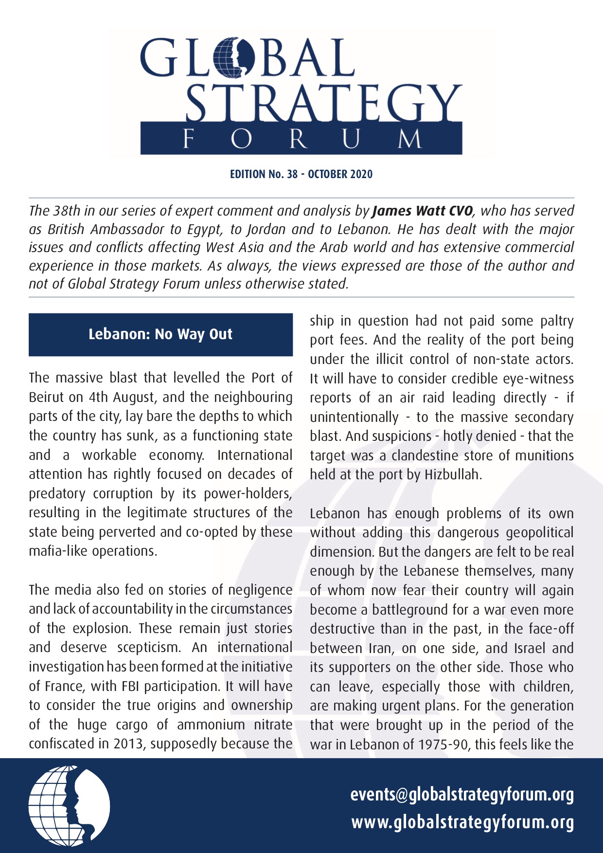 We have today published the 38th in our series of expert comment and analysis by James Watt CVO, who has served as British Ambassador to Egypt, to Jordan and to Lebanon. As always, the views expressed are those of the author Continue reading →