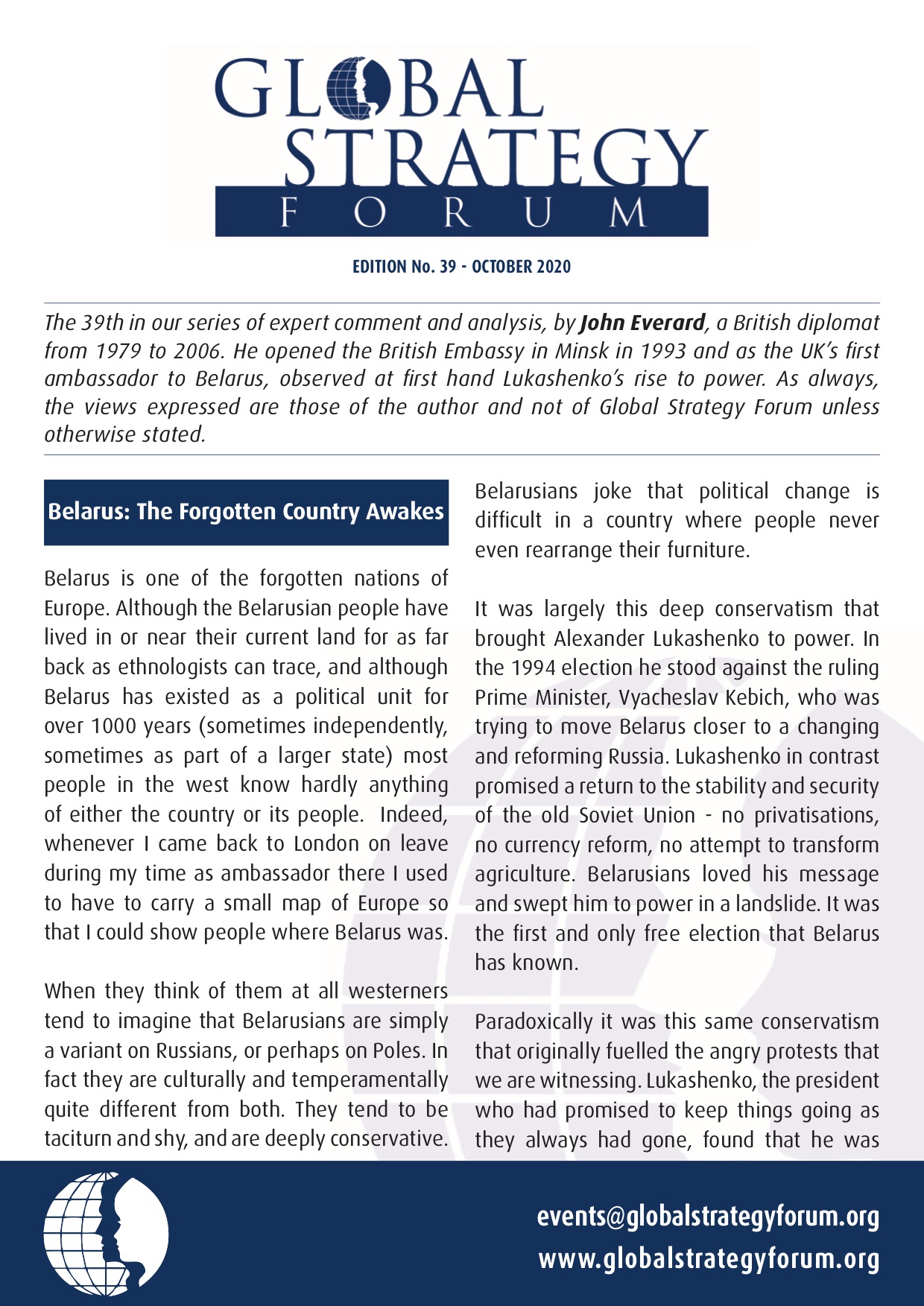 We have today published the 39th in our series of expert comment and analysis, by John Everard, a British diplomat from 1979 to 2006. He opened the British Embassy in Minsk in 1993 and as the UK’s first ambassador to Belarus, observed Continue reading →