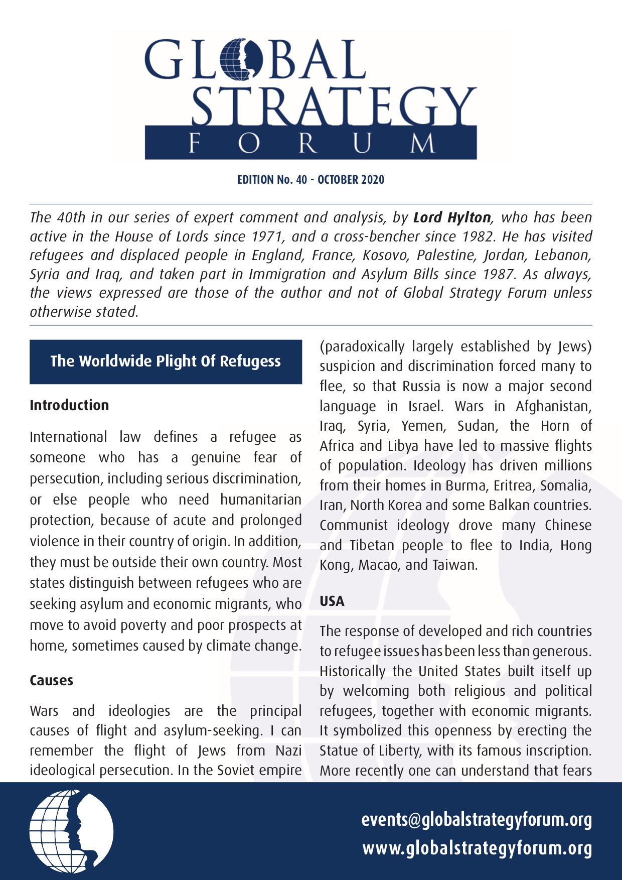 We have today published the 40th in our series of expert comment and analysis, by Lord Hylton, who has been active in the House of Lords since 1971, and a cross-bencher since 1982. He has visited refugees and displaced people in England, Continue reading →